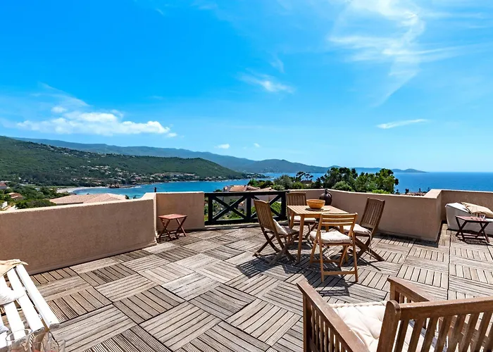 Guests can enjoy a seaside sea view from a terrace at Casa Di Ruppione - Magnifique Vue Mer Pietrosella, a 10-minute ride from Presqu'Ile Isolella.